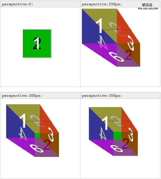 鏡頭在z坐標固定時,x和y坐標(perspective-origin)變化時的差別。