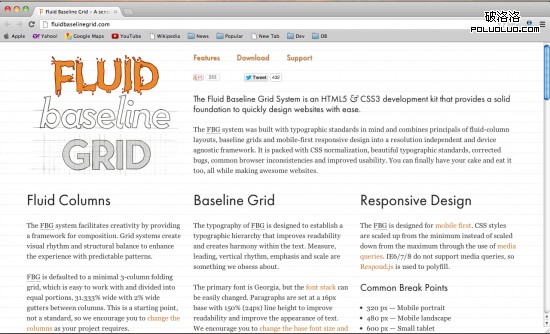 Fluid Baseline網格系統是一個HTML5 & CSS3開發工具包,為網站快速設計提供了堅實的基礎。