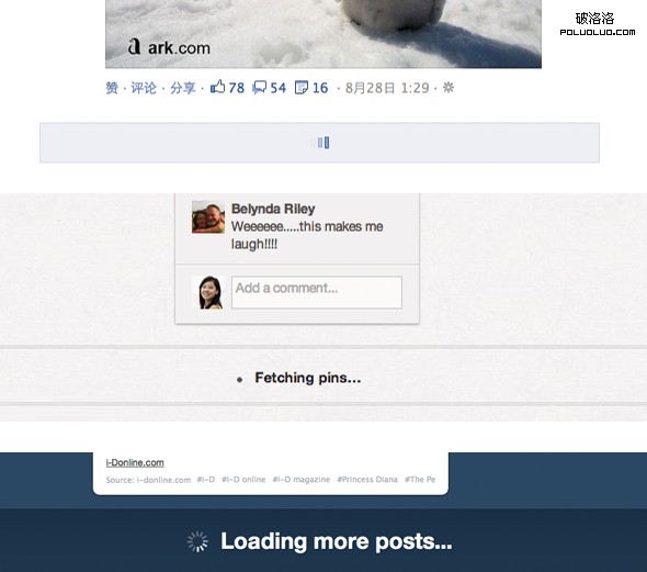 但是由於信息是自動加載的,頁面看起來好像沒有結束,很難預測頁面的內容到底有多少。一味的加載會讓用戶產生迷失感:這一頁的內容到底有多少呢?我已經浏覽了多少內容?我什麼時候才能讀完這一頁呢?對於這種沒有停頓的頁面,用戶想要搜尋之前看到過的信息時,也有些困難。但對於這種以休閒娛樂為主社交型的產品來說,使用不打斷用戶信息流的加載方式,還是非常合適的。