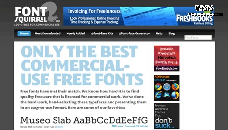 Font Squirrel是一個非常優秀的免費字體資源網站,收集了很多高品質字體供網頁設計者免費下載,還有個字體格式生成工具@font-face generator,上傳一個字體文件,可以生成多種字體格式及CSS代碼,非常有用。如果你需要一些優秀的免費英文字體,這是個好去處。