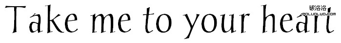 .font-face-display { font: 66px ChantelliAntiquaRegular, Helvetica, sans-serif; } <div class="font-face-display">Take me to your heart</div>最重效果如下: