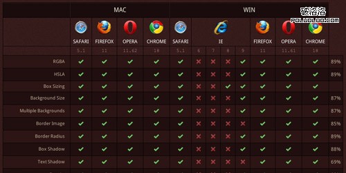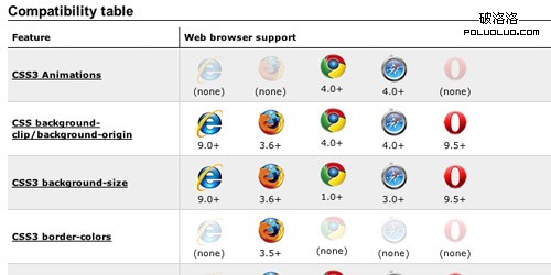 4. HTML5 & CSS3 Support主流浏覽器對HTML5和CSS3支持情況一覽表。