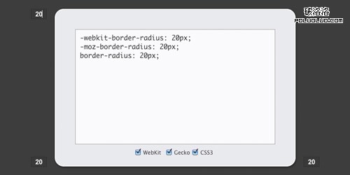 3. Border Radius邊界半徑(圓角)代碼生成器,通過設置四個角的半徑數字,即可自動生成代碼,且能夠直接預覽到效果。
