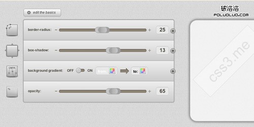 5. CSS3針對邊界半徑、box陰影、背景漸變和不透明度的CSS3代碼生成器。