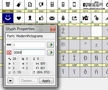 可以看到字體對應的字符是i,unicode編碼是0069。