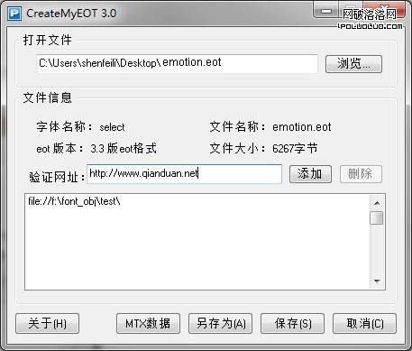 因為IE9以前只支持eot格式,所以需要將ttf轉換為eot先,這裡可以使用微軟官方的WEFT軟件,也可以使用一些在線工具: