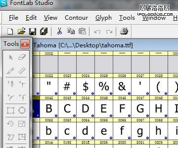打開FontLab,隨便打開一款字體文件,比如tahoma.ttf: