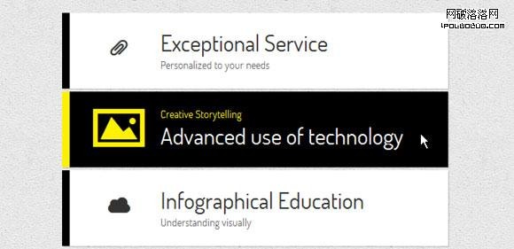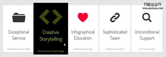 CSS3新增添了實現動畫效果的新功能,通過本文,你可以對這些新功能有個初步了解。本文將為大家帶來一些充滿創意的菜單懸停效果。它由圖標,主標題,副標題等簡單的元素構成,通過CSS3最新的過渡(transition)和動畫(animation)兩個功能實現鼠標懸停時的動畫效果。我們用同樣的元素做出了9種不同的效果。
