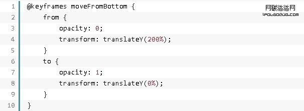 將translateX的值設為100%即可實現從右向左(moveFromRight )的動畫效果。