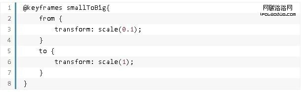 由小變大( smallToBig )的動畫效果展示了如何使用CSS3的變換處理(transform)中的scale屬性。