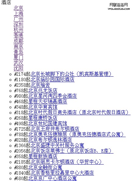 <dl>這種結構在顯示上沒有任何問題,切換城市時下面的列表會相應改變。但當無法正常加載css時顯示效果就比較杯具了,截圖如下: