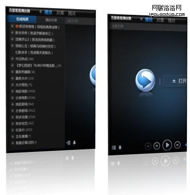 暴風影音播放器,播放列表放在右側,LOGO不會跳動,很有視覺穩定性,一看便知列表部分做了減法;但是右側媒體中心部分是做了加法的,可以點擊隨時關閉的。