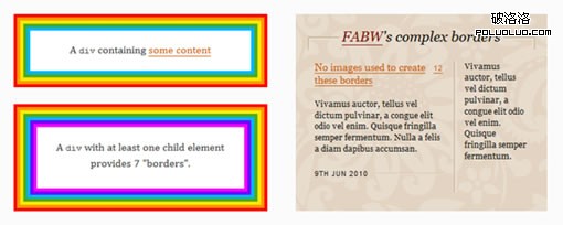 多邊框的處理方式有很多相類似之處。利用這些方式可以避免使用圖片而產生簡單的效果。