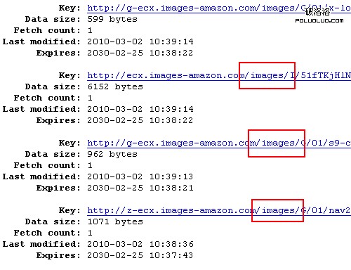 Firefox 緩存顯示的浏覽器緩存的來自 amazon.com 的圖片(在 Firefox 地址欄輸入 “about:cache” 來查看)。