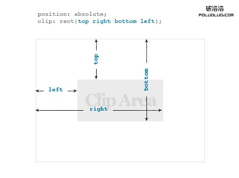 剪輯 (clip) 屬性就像一個面具。它允許你使用矩形掩蓋頁面元素的內容。要剪輯一個元素:你必須指定其 position 屬性為 absolute,然後指定相對於元素的 top,right,bottom,left 值。