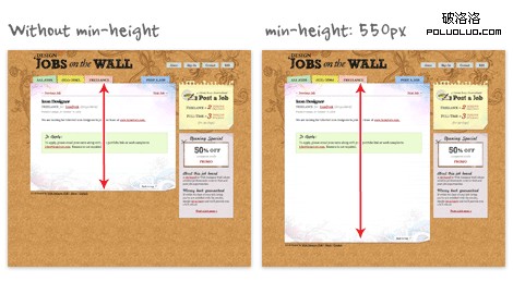 注:神奇的 IE6 原生不支持 min-height 屬性,不過幸好有一個 min-height hack。