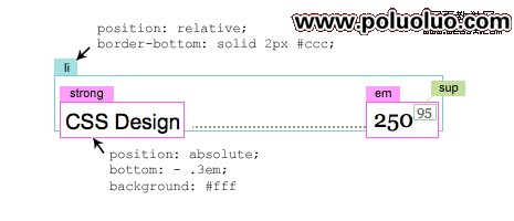 2.給<li> postion:relative 並添加一個底邊框樣式.