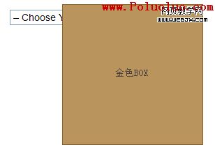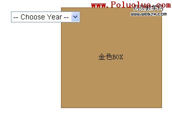 <select>元素出現在了頂部,它被設置了“相對定位”並且Z-index值為“1”。金色的BOX在這個層疊順序中排在了第二位,它的Z-index值是“9999”。因為自然層疊順序及Z-index值的原因,在我們目前所用的所有浏覽器中金色的BOX都會排在頂部,但IE6除外。