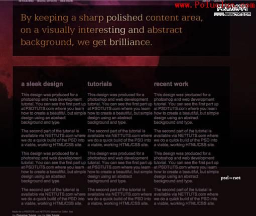 網頁制作poluoluo文章簡介:在這篇教程裡我們只制作首頁,不過你可以以此為基礎用相同的布局制作內頁。