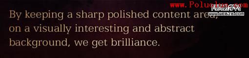 注意,我使用了圖片來表現文本塊。一般說來,直接用文字是最好的,這樣能讓網頁更容易被搜索到同時也被實踐證明是比較好的做法。但如果要用文字實現圖中的效果我們必須使用一些難得多的Flash和SIRr技術。既然本文是篇簡明易懂的教程,我還是寧願用一副大圖片。:-)