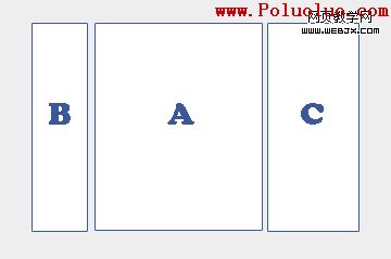 2、設定A、B、C的寬度,將A、B、C分別向左浮動