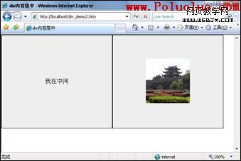 (2)div內容居中。這是很多網站需要用到的居中示例,即保持div包含內容的水平和垂直居中。在D:\web\目錄下創建img目錄,放入一個jpg格式圖片文件,並命名為cs.jpg,在D:\web\目錄下創建網頁文件(XHTML1.0),命名為div_demo2.htm,編寫div_demo2.htm文件代碼如代碼11.12所示。