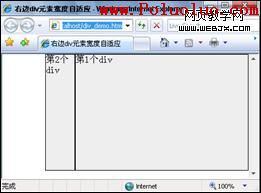 筆者特意把2個div設置為向右浮動,第1個div元素為自適應寬度,而第2個div元素為固定寬度。本例為了防止讀者的一個錯覺,即前面的div浮動後一定在左邊,其實左右方向取決於div元素浮動屬性的值。