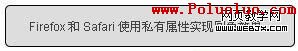 <div style=" background-color: #ccc; -moz-border-radius: 5px; -webkit-border-radius: 5px; border: 1px solid #000; padding: 10px;" >Firefox 和 Safari 實現圓角</div>