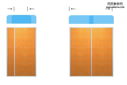 說起來滑動門也不是什麼高深的技術,也只是CSS的一種手法罷了。它是利用背景圖像的交迭以及相互滑動來實現一些效果。最常見的就是圓角的導航了,我們可以把一左一右兩個圓角背景想像成兩扇可以滑動的門,他們可以滑到一起並交迭以顯示較少的內容,也可以相互滑開以顯示較多的內容,就如下圖所示:
