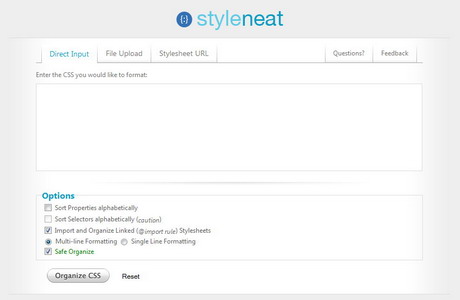 『Styleneat』CSS 文件結構格式重新組織服務,可以將書寫風格凌亂的 CSS 文件按照層疊式結構重新組建,方便您進行閱讀和研究,十分實用的一個在線工具。