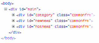 先從寫幾個Div開始 ,一步一步的把結構合理的搭建出來,如圖: