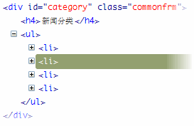 上面的圖是左列#leftbar的具體內容和結構。。其中定義了一個 .left_subnav,代表左列所包含的子導航條。。導航條一般都是用ul無序列表來搭建的,這種做法是符合Web標准的,所以不用擔心,怎幺樣。。有了良好的命名習慣是不是看起來更加容易了呢??其它的我就不解釋了。。很簡單。。同學們應該自己思考一下,這些標簽是什幺含義。。