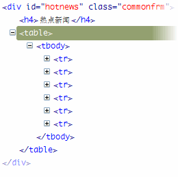 #newnews 和 #hotnews 結構相同 ,都是一個標題和一個表格,其中表格用來顯示具體的新聞內容,兩個塊之間也設置了float:left和width:560px以實現和左邊的列#category並排顯示在同一行的效果,接著定義margin-left 和 margin-right ,區分出各自的范圍。。