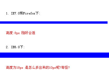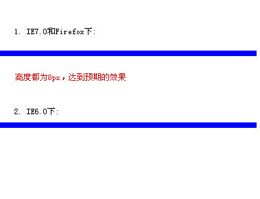意思是定義一個高度為8px,藍色背景的div.在各浏覽起的實際效果如下: