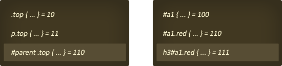選擇器特異性 是一種用於確定當多個規則用於同一個元素的時候哪一個起作用(優先級)的處理方法。