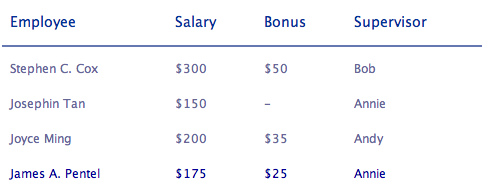 這個table則對上面效果的橫向可讀性作了改進,通過為header設置相對於其他元素更為突出的背景色實現。