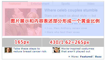 黃金比例不僅在大的布局上可以使用,在小的欄目設計中也可以靈活使用。可以細化到很小的設計元素,比如一塊圖片信息展示區域: