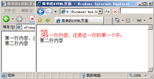 這個比較變態——因為容器的寬度過小,而使得第一行“放”不下,而“擠”到第二行的內容,將失去偽對象“:first-line”設置的樣式 -_-b... 看下面的截圖,將更有助於你的理解。依然是上面的那個示例,但是當將浏覽器的寬度縮小一定程度時,第一行的文字被“擠”到了第二行,同時失去了偽對象“:first-line”指定的樣式(紅色字體顏色)。