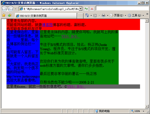 這裡是footer,就放一些版權信息吧。©<a target="_blank" href="http://justinyoung.cnblogs.com/" title="IE7的web標准之道">YES!B/S!</a>