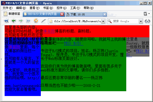 附:測試頁面在Opera(版本9.25)中的顯示效果截圖(寫文章的時候Opera正好有了新的升級版本)
