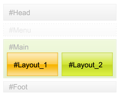 布局說的是將#Main裡的內容分成幾大塊。我們看Tudou.com,#Main裡典型的左右結構,我們用#Layout_1,#Layout_2表示。如圖