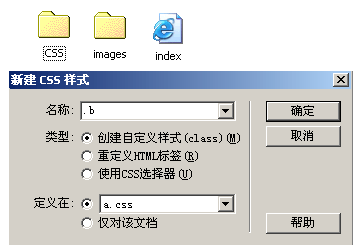 因為一個網頁有很多頁面,其中就要用到很多CSS(而且其中有一部分CSS是重復的),如果每頁單獨定義的話,以下是管理的方法,在index下的images文件夾中,CSS文件夾與之同級,方便調用和管理