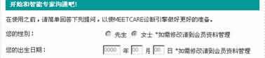 隨身醫生網站的“虛擬醫生”功能中的一步。性別和出生日期都無法修改,就不應該使用文本框或單選按鈕這樣的組件。