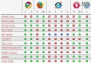 文中的圖表讓我們對於每一個浏覽器對css3.0新屬性的支持情況一目了然,通過升級firfox、Chrome、Safari、Opera浏覽器的版本是可以做到支持css3.0