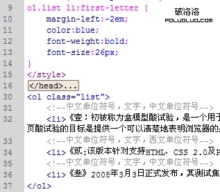 OL定義有序列表的時候,除非指定list-style-position:inside;,否則文字和前導符是有縮進的。但有的時候,OL定義的列表類型有限制,比如不能定義漢字