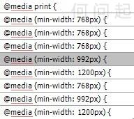 先看下面的代碼,這是從bootstrap中遍歷出來的,min-width來確認分別是