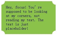<div class="example2">Hey, focus! You’re supposed to be looking at my corners, not reading my text. The text is just placeholder!</div>