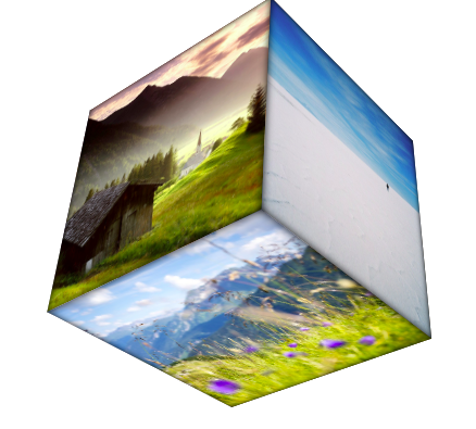最後別忘了給每個不同面加上圖片,位置什麼的再稍微調一下,這個酷炫的立方體就大功告成了。