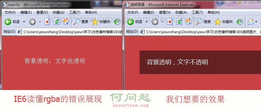 background-color: rgba(0,0,0,0.5);/* IE9、標准浏覽器、IE6和部分IE7內核的浏覽器(如QQ浏覽器)會讀懂 */