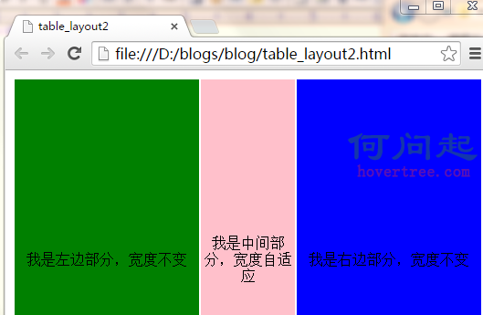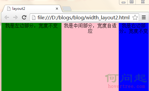 2、 三列:左右兩邊寬度不變,中間部分自適應
